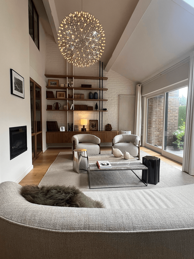 Dans un salon baigné de lumière, le projet Brigode se distingue par la rencontre harmonieuse du noyer américain et de la laque argile, dans un dialogue subtil entre chaleur et équilibre. Conçu en MDF plaqué noyer US et MDF laqué blanc gamme argile, ce meuble de salon sur mesure associe la rigueur du dessin à la douceur des matières. Les étagères suspendues semblent flotter, soutenues par une structure en tubes métalliques laqués noir, apportant une touche graphique et aérienne à l’ensemble. En fond de composition, la verrière en noyer américain prolonge la ligne du meuble et crée une continuité visuelle naturelle entre les espaces. L’ensemble s’inscrit dans une atmosphère apaisante et raffinée, où chaque détail révèle la précision du travail artisanal et la recherche d’une esthétique intemporelle. Architecte du projet: Astrid Macarez