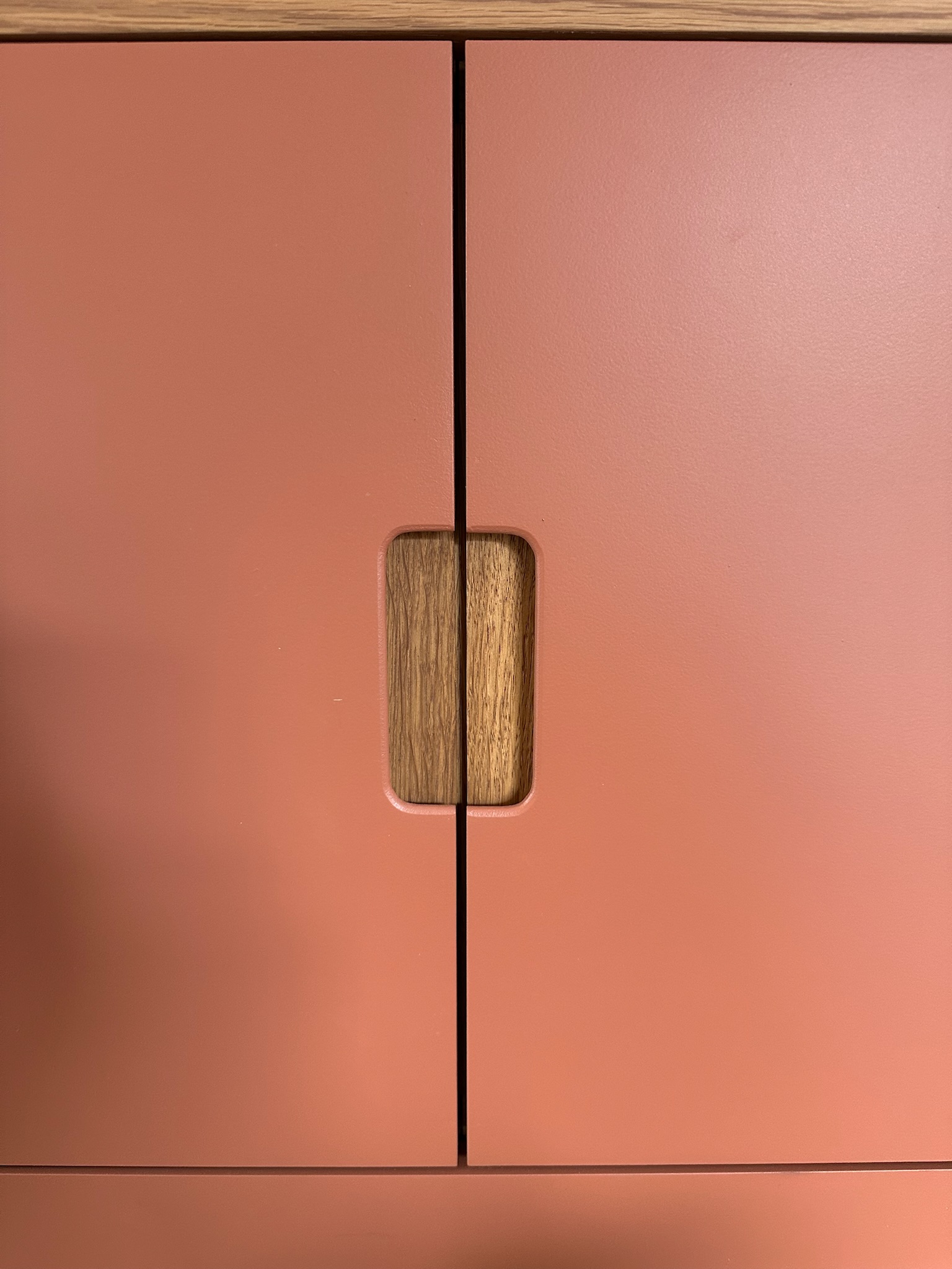 Réalisation d’un meuble mural sur mesure alliant placage chêne, façades laquées et éléments décoratifs en cannage. L’ensemble se distingue par ses lignes arrondies, ses niches rétro-éclairées et sa composition graphique centrale. Les portes coulissantes du module central permettent de dissimuler élégamment la télévision lorsque celle-ci n’est pas utilisée. Le bas du meuble intègre de nombreux rangements fermés, tandis que les étagères latérales apportent légèreté et fonctionnalité. Une réalisation mêlant savoir-faire artisanal et design contemporain. Architecte du projet: Alchimie DECO
